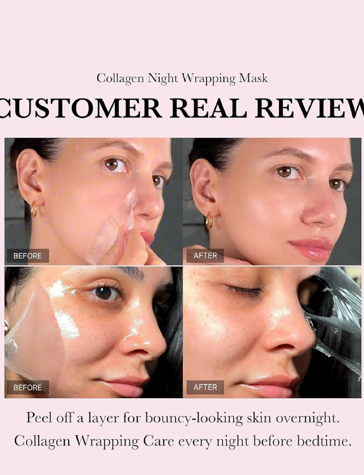 Wake up to firmer, glowing skin with this Korean skincare must-have. Infused with hydrolyzed collagen, this overnight peel-off mask boosts elasticity, deeply hydrates, and helps reduce sagging and dullness. The unique wrapping formula locks in moisture while you sleep, revealing a revitalized, radiant complexion by morning.